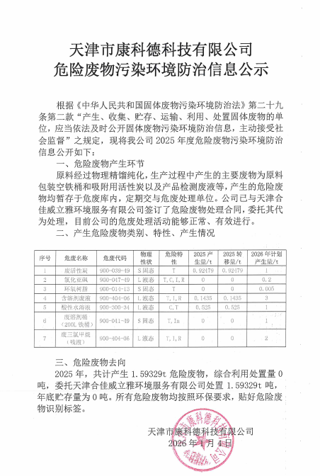 上一篇:天津康科德醫藥化工有限公司危險廢物污染環境防治信息公示 下一篇:康科德公司恭祝您新年快樂!