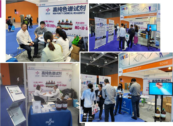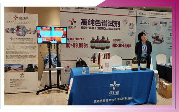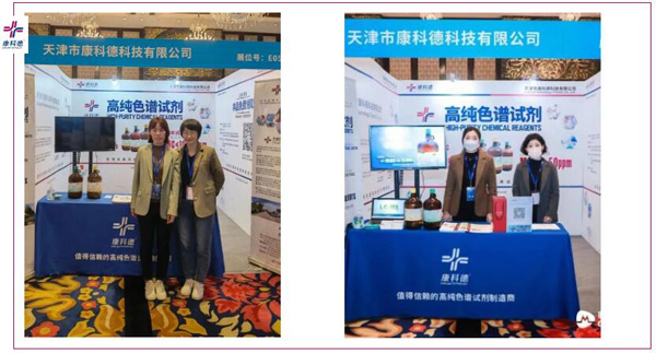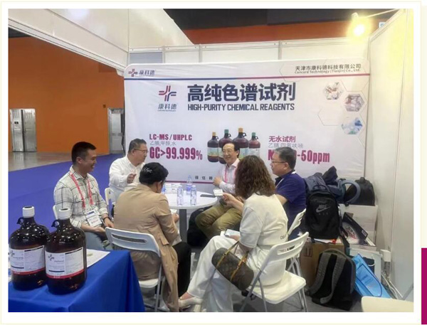 康科德團隊由營銷總監(jiān)杜文玲和技術總監(jiān)劉巖帶隊,將康科德高純色譜試劑產品帶到現(xiàn)場進行交流探討。